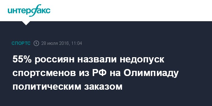 55% россиян назвали недопуск спортсменов из РФ на Олимпиаду политическим заказом