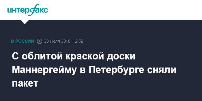 Москва. 28 июля. INTERFAX.RU - С памятной доски финскому маршалу Карлу Маннергейму в Петербурге сняли закрывавший ее полиэтилен, она предстала перед горожанами облитой красной краской, передал корреспондент "Интерфакса" в четверг.