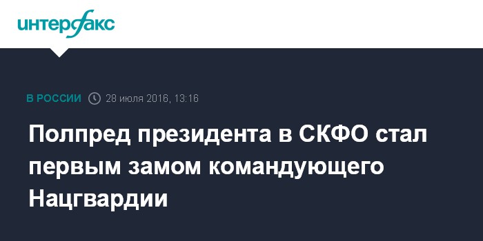 Полпред президента в СКФО стал первым замом командующего Нацгвардии