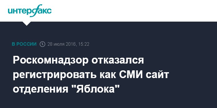 Роскомнадзор отказался регистрировать как СМИ сайт отделения "Яблока"