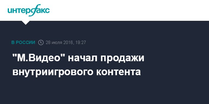 Москва. 28 июля. INTERFAX.RU - Ритейлер "М.Видео" заключил соглашения с партнерами Microsoft (игровые приставки Xbox) и Sony (игровые приставки PlayStation) о продаже внутриигрового контента для консольных игр на своем сайте.