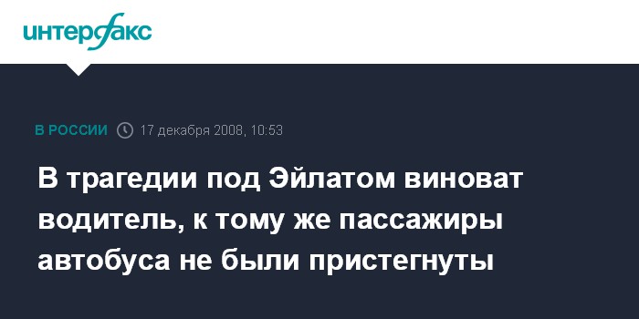 Москва. 17 декабря. INTERFAX.RU - Причиной аварии автобуса с российскими гражданами в Израиле стала ошибка водителя, считают в израильской полиции.