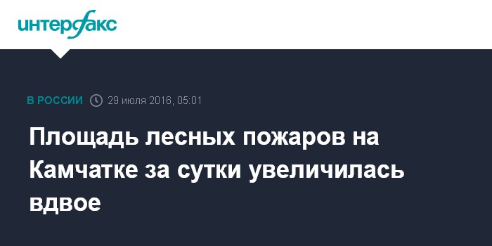 Москва. 29 июля. INTERFAX.RU - Два лесных пожара, которые тушат в Мильковском районе Камчатского края, за сутки разрослись более чем в два раза, сообщил агентству "Интерфакс - Дальний Восток" в пятницу представитель КГАУ "Охрана камчатских лесов".