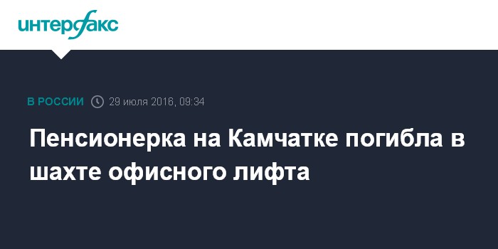 Москва. 29 июля. INTERFAX.RU - Следователи начали проверку по факту гибели пожилой женщины, упавшей в шахту лифта на Камчатке, сообщил "Интерфаксу" в пятницу представитель краевого управления СКР.