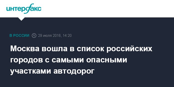 Москва вошла в список российских городов с самыми опасными участками автодорог