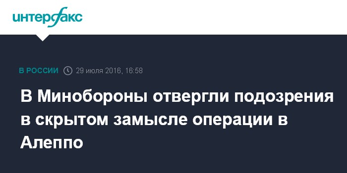 В Минобороны отвергли подозрения в скрытом замысле операции в Алеппо