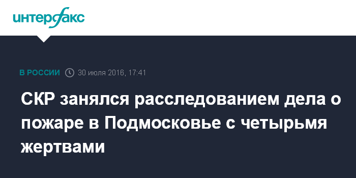 Москва. 30 июля. INTERFAX.RU - Следователи в Московской области возбудили уголовное дело по факту гибели четырех человек при пожаре в Одинцово, сообщает пресс-служба СК РФ в субботу.