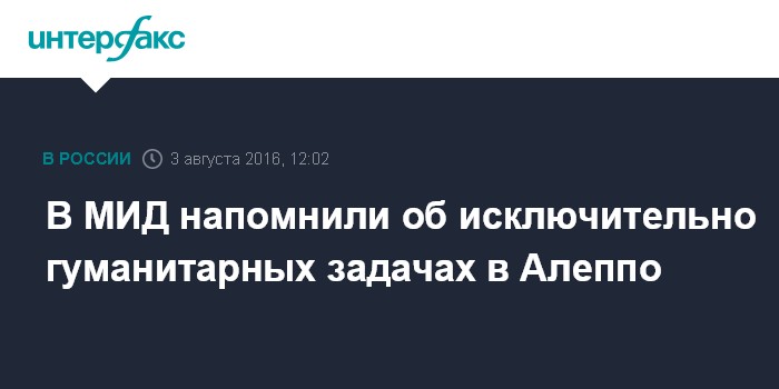В МИД напомнили об исключительно гуманитарных задачах в Алеппо