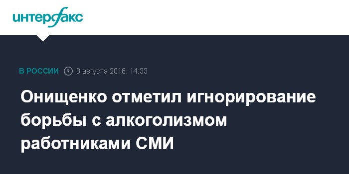 Онищенко отметил игнорирование борьбы с алкоголизмом работниками СМИ