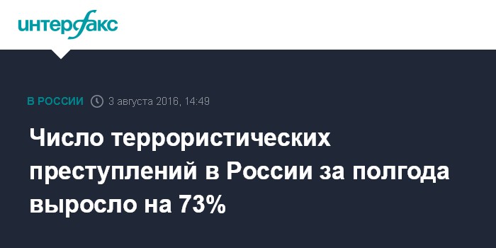 Число террористических преступлений в России за полгода выросло на 73%
