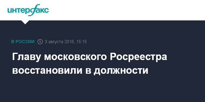 Москва. 3 августа. INTERFAX.RU - Игорь Майданов восстановлен в должности руководителя управления Росреестра по Москве, сообщили в среду "Интерфаксу" в пресс-службе ведомства.