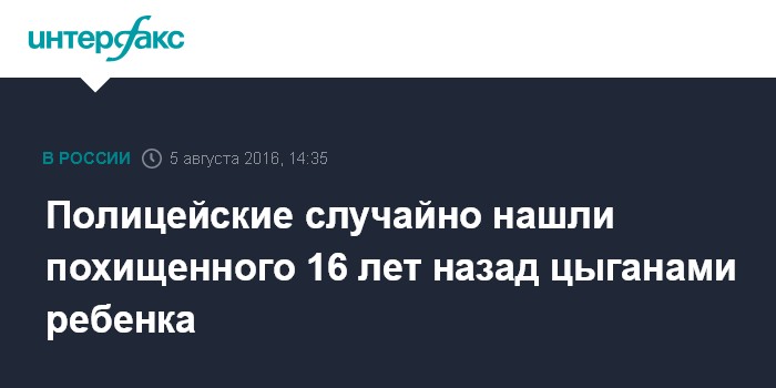 Полицейские случайно нашли похищенного 16 лет назад цыганами ребенка