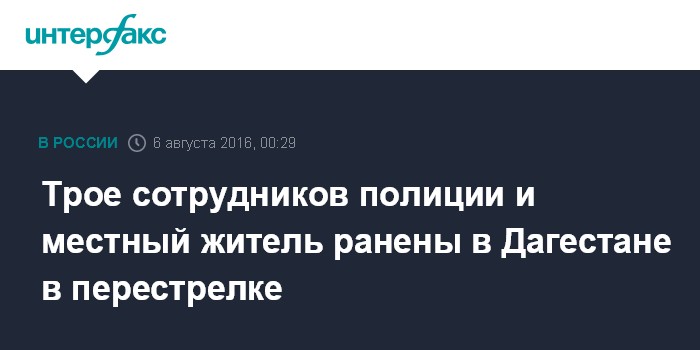 Москва. 6 августа. INTERFAX.RU - Трое полицейских и местный житель ранены неизвестными в селении Карамахи Буйнакского района Дагестана, сообщили агентству "Интерфакс" в пресс-службе МВД региона.