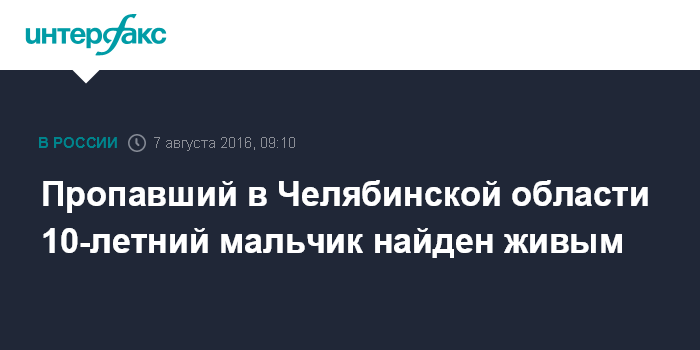 Пропавший в Челябинской области 10-летний мальчик найден живым
