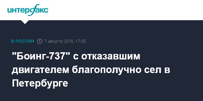 "Боинг-737" с отказавшим двигателем благополучно сел в Петербурге