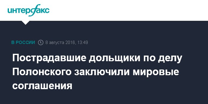 Пострадавшие дольщики по делу Полонского заключили мировые соглашения