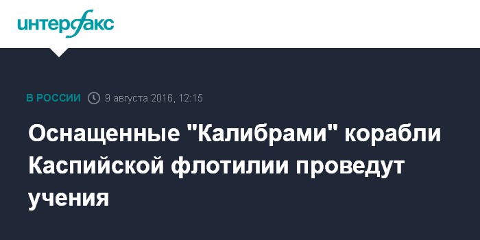 Москва. 9 августа. INTERFAX.RU - В соответствии с планом боевой подготовки с 15 по 20 августа 2016 года в юго-западной части Каспийского моря будет проведено зачетное тактическое учение сил Каспийской флотилии, сообщили "Интерфаксу" в Управлении пресс-службы и информации Минобороны РФ.