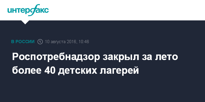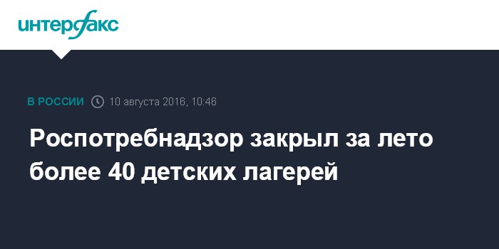 Москва. 10 августа. INTERFAX.RU - За лето 2016 года была приостановлена работа 43 детских лагерей, еще 23 не были открыты, заявила глава Роспотребнадзора, главный санитарный врач РФ Анна Попова.