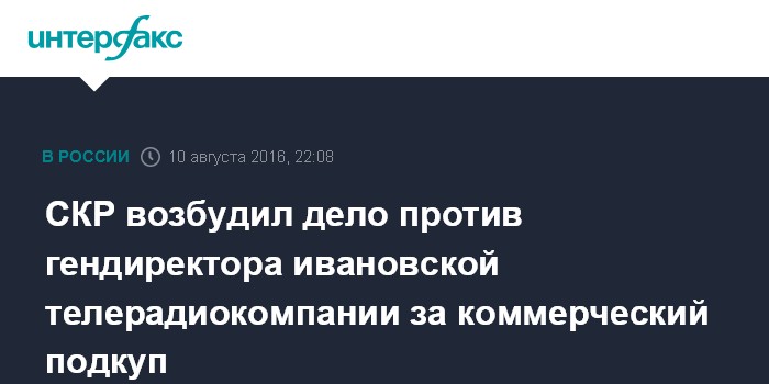СКР возбудил дело против гендиректора ивановской телерадиокомпании за коммерческий подкуп