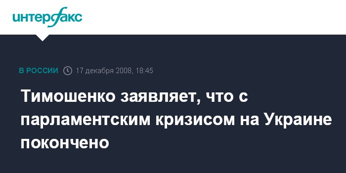 Москва. 17 декабря. INTERFAX.RU - Премьер-министр Украины Юлия Тимошенко считает, что создание в Верховной Раде новой коалиции является завершением политического кризиса в стране.