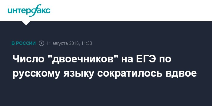 Москва. 11 августа. INTERFAX.RU - Вице-премьер Ольга Голодец заявила, что число участников ЕГЭ-2016, не сдавших экзамен по русскому языку, значительно сократилось по сравнению с прошлым годом.