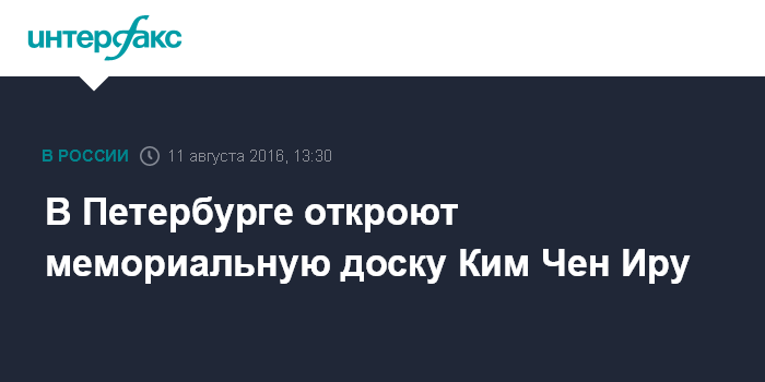 Москва. 11 августа. INTERFAX.RU - Мемориальную доску северокорейскому государственному деятелю Ким Чен Иру откроют в музее Кировского завода в Петербурге в четверг, сообщили "Интерфаксу" в пресс-службе предприятия.