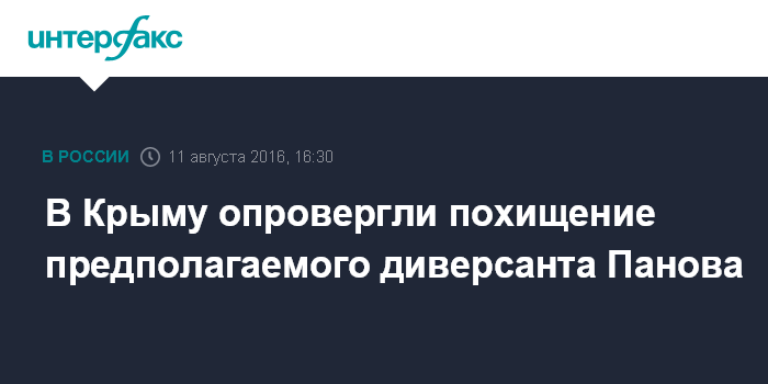 Москва. 11 августа. INTERFAX.RU - Источники в Крыму утверждают, что сообщения украинской стороны о похищении на Украине жителя Запорожской области Евгения Панова, подозреваемого в организации диверсий в Крыму, не соответствуют действительности.