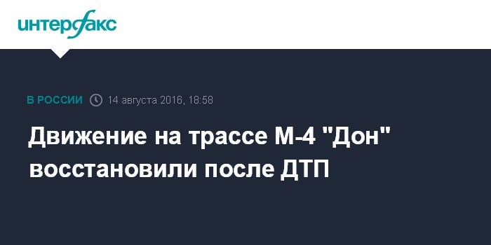 Москва. 14 августа. INTERFAX.RU - В Ростовской области на 868 км ФАД М-4 "Дон" движение полностью восстановлено, сообщили "Интерфаксу" в пресс-службе ГУ МВД России по Ростовской области.