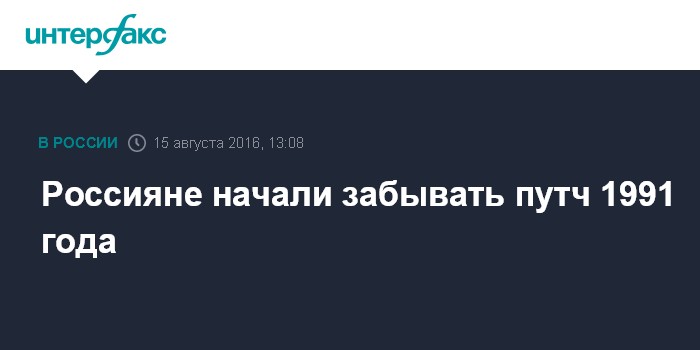 Москва. 15 августа. INTERFAX.RU - Верно назвать события, произошедшие 19-21 августа 1991 года, смогли 50% россиян, при этом 48% не помнят или не знают, что тогда случилось, сообщили "Интерфаксу" социологи "Левада-Центра".