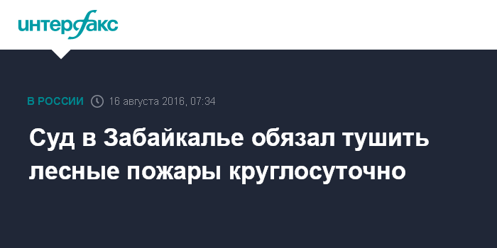Москва. 16 августа. INTERFAX.RU - Центральный районный суд Читы по иску природоохранной прокуратуры обязал КГСАУ "Забайкальское лесохозяйственное объединение" тушить лесные пожары не только днем, но и ночью, сообщает пресс-служба краевой прокуратуры во вторник.