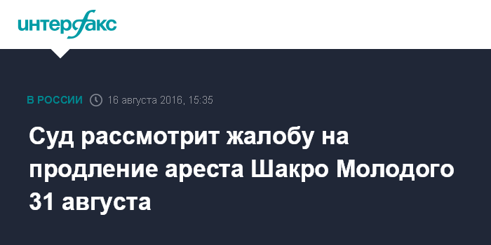 Москва. 16 августа. INTERFAX.RU - Мосгорсуд 31 августа проверит законность продления ареста Захарию Калашову, известному в криминальном мире как Шакро Молодой, который обвиняется в вымогательстве 8 млн рублей и подозревается в организации преступного сообщества.