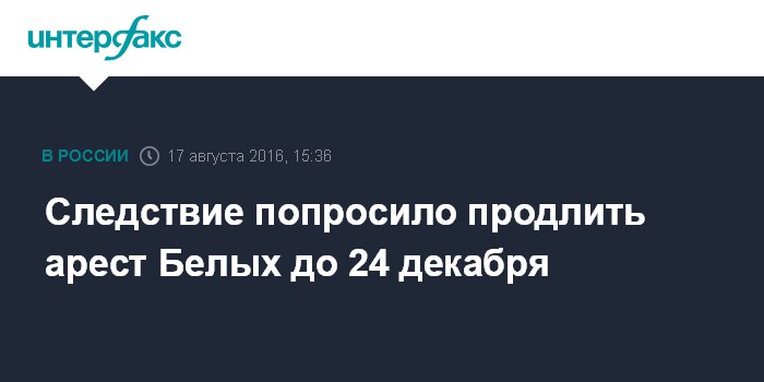 "В Басманный суд поступило ходатайство следственных органов о продлении срока содержания под стражей в отношении Белых на четыре месяца, то есть до 24 декабря", - сообщила в среду "Интерфаксу" пресс-секретарь Басманного суда Юнона Царева.