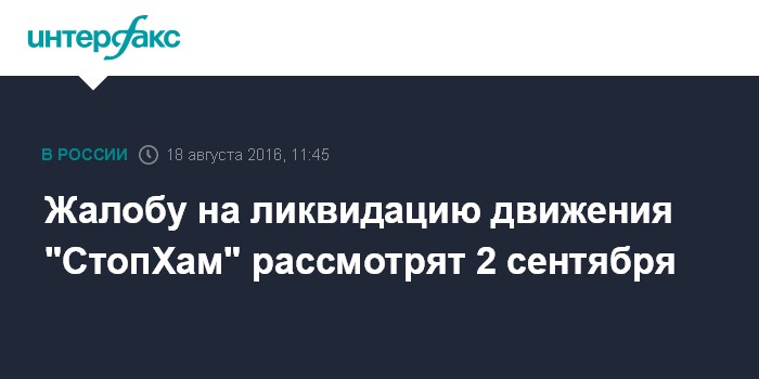 Жалобу на ликвидацию движения "СтопХам" рассмотрят 2 сентября