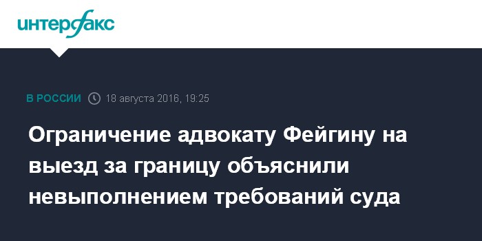 Ограничение адвокату Фейгину на выезд за границу объяснили невыполнением требований суда
