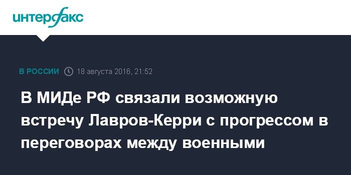 Москва. 18 августа. INTERFAX.RU - В российском МИДе пока не подтверждают предстоящую встречу главы ведомства РФ Сергея Лаврова и госсекретаря США Джона Керри, но отмечают, что сама возможность контакта связана с прогрессом на переговорах между военными экспертами двух стран.