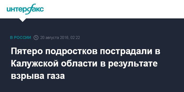 Москва. 20 августа. INTERFAX.RU - Пять несовершеннолетних госпитализированы после взрыва газа в Калужской области, сообщило вечером в пятницу областное УМВД.