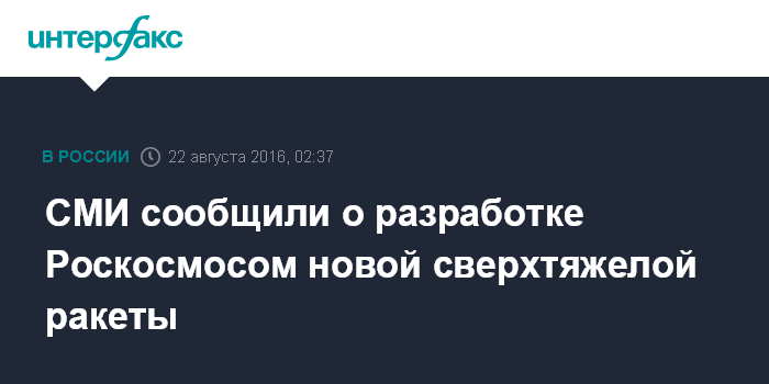 Москва. 22 августа. INTERFAX.RU - Госкорпорация "Роскосмос" приступила к проектированию новой ракеты сверхтяжелого класса, сообщила в понедельник газета "Известия" со ссылкой на гендиректора ракетно-космической корпорации (РКК) "Энергия" Владимира Солнцева.