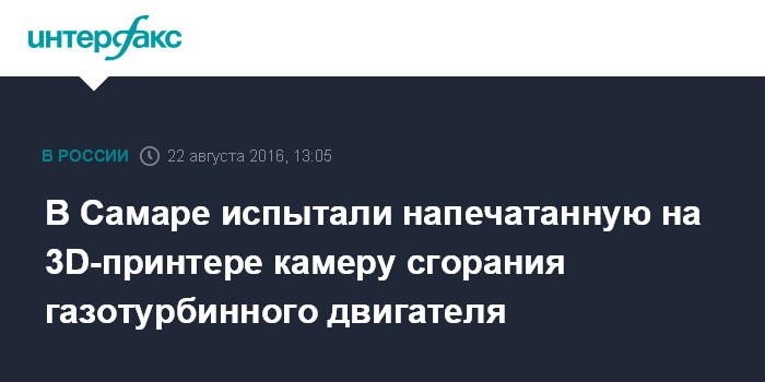 В Самаре испытали напечатанную на 3D-принтере камеру сгорания газотурбинного двигателя