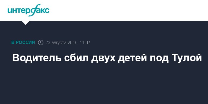 Москва. 23 августа. INTERFAX.RU - Двух детей сбила машина на трассе в Тульской области, один из них находится в реанимации в тяжелом состоянии, сообщили "Интерфаксу" во вторник в отделе пропаганды регионального УГИБДД.