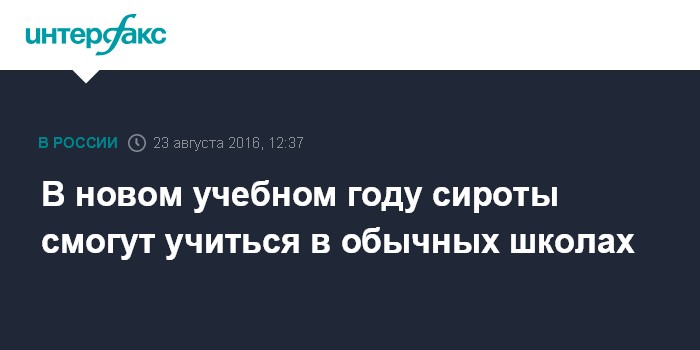 Москва. 23 августа. INTERFAX.RU - Детдомовцы и сироты практически во всех регионах России в новом учебном году пойдут учиться в обычные школы, заявила во вторник вице-премьер РФ Ольга Голодец