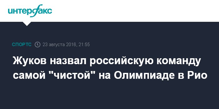 "Наша команда в труднейших условиях сумела блестяще представить нашу страну на этой самой сложной за последние годы Олимпиаде. Они сражались не только за себя, но и за тех спортсменов, которые не попали в Рио. Вопреки всем прогнозам, наши спортсмены выступили блестяще. У нас была самая "чистая" команда на Олимпиаде. Никто, наверное, не сдал столько проб, сколько наши, и не одной не было положительной, - сказал Жуков журналистам во вторник на церемонии встречи олимпийской сборной России в аэропорту "Шереметьево".