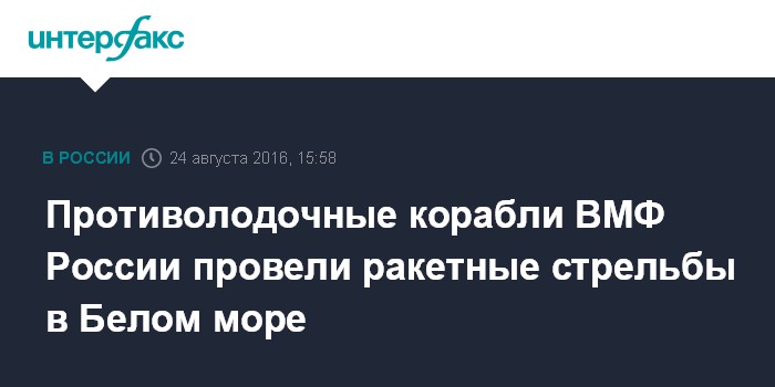 Москва. 24 августа. INTERFAX.RU - Малые противолодочные корабли (МПК) Беломорской военно-морской базы "Онега" и "Нарьян-Мар" провели учения по противовоздушной обороне с боевой стрельбой зенитными ракетами по имитированной воздушной цели.