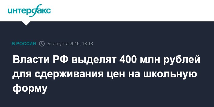 Власти РФ выделят 400 млн рублей для сдерживания цен на школьную форму