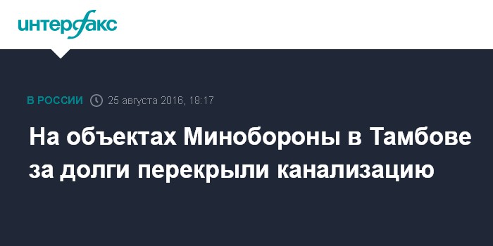 Москва. 25 августа. INTERFAX.RU - "Тамбовские коммунальные системы" (ТКС, дочка "РКС") ограничили услуги водоотведения в ряде военных городков Тамбова за долги Минобороны, сообщает в четверг пресс-служба ТКС.