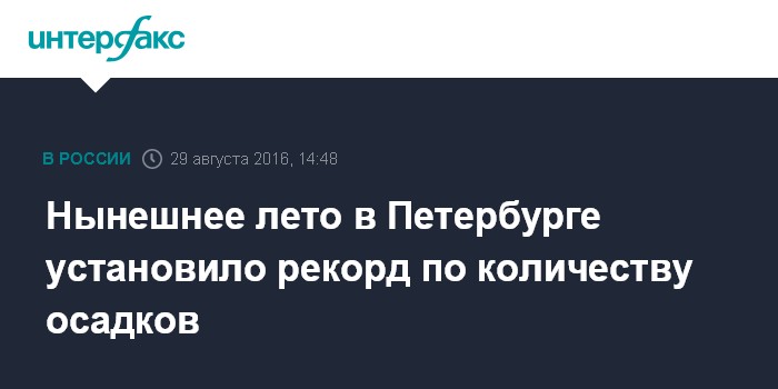 Москва. 29 августа. INTERFAX.RU - Рекордное за всю историю метеонаблюдений количество осадков выпало в Петербурге этим летом, сообщил главный синоптик городского Гидрометцентра Александр Колесов в понедельник.