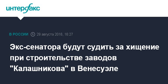 Экс-сенатора будут судить за хищение при строительстве заводов "Калашникова" в Венесуэле