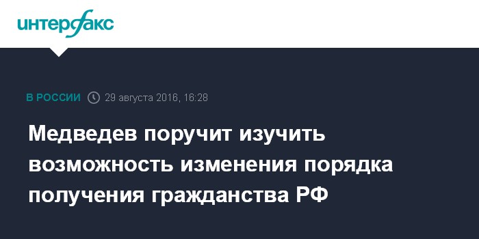 Москва. 29 августа. INTERFAX.RU - Премьер РФ Дмитрий Медведев пообещал, что даст поручение проанализировать возможность изменения критериев предоставления российского гражданства.