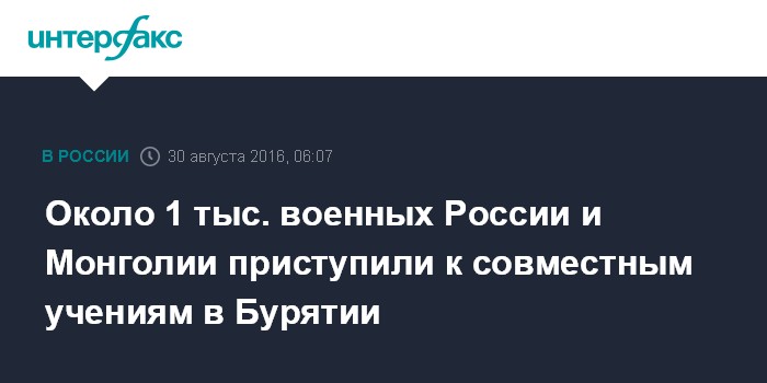 Москва. 30 августа. INTERFAX.RU - Открытие совместного российско-монгольского военного учения "Селенга-2016" состоялось на учебно-тренировочном комплексе Восточного военного округа (ВВО) "Бурдуны" в Бурятии, сообщил начальник пресс-службы ВВО полковник Александр Гордеев.