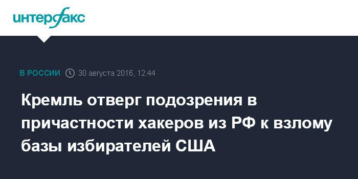 Москва. 30 августа. INTERFAX.RU - В Москве называют безосновательными подозрения в причастности связанных с Россией хакеров к взлому систем регистрации избирателей в американском штате Аризона. Об этом заявил во вторник пресс-секретарь президента РФ Дмитрий Песков.