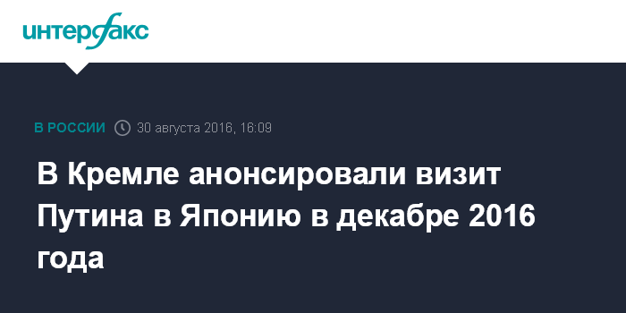 В Кремле анонсировали визит Путина в Японию в декабре 2016 года